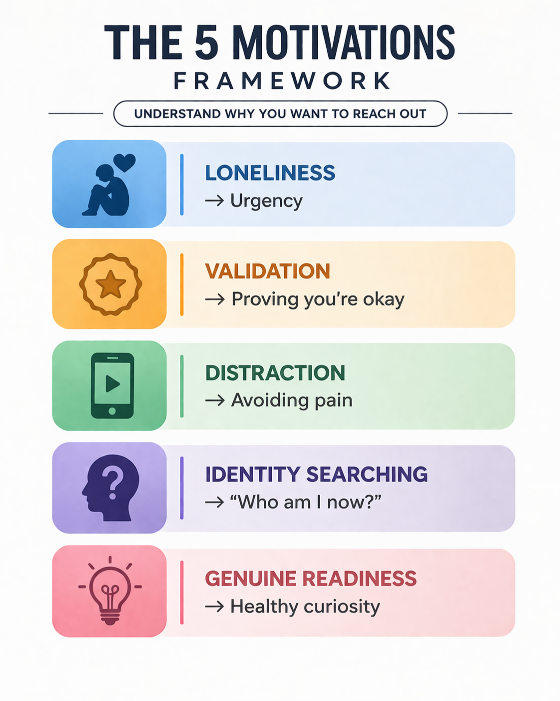 - Loneliness — Real and valid, but dangerous when it creates urgency and you mistake relief for connection.
