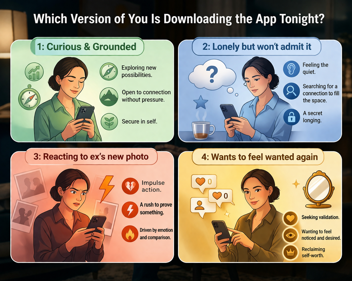 That quiet Tuesday evening when your thumb hovers over the dating app, pause. Ask yourself: Which version of me is making this decision right now? And do I truly know what I’m looking for?